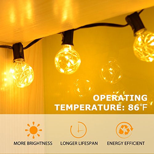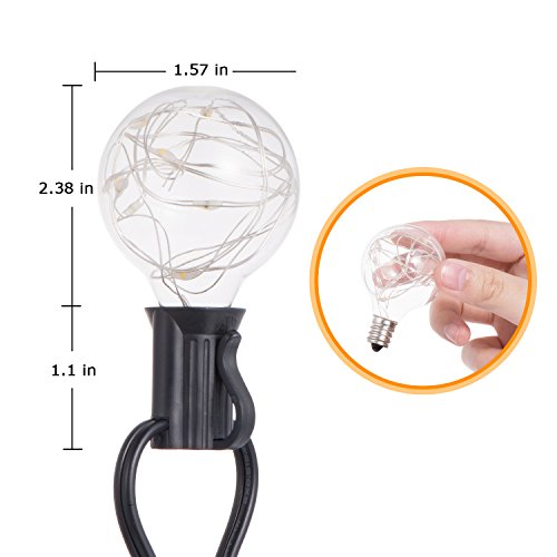 - 25 G40 clear light bulbs, DC adapter with 4ft lead wire, E12 lamp base; 3W rated power, low consumption and more energy saving, safe to touch.