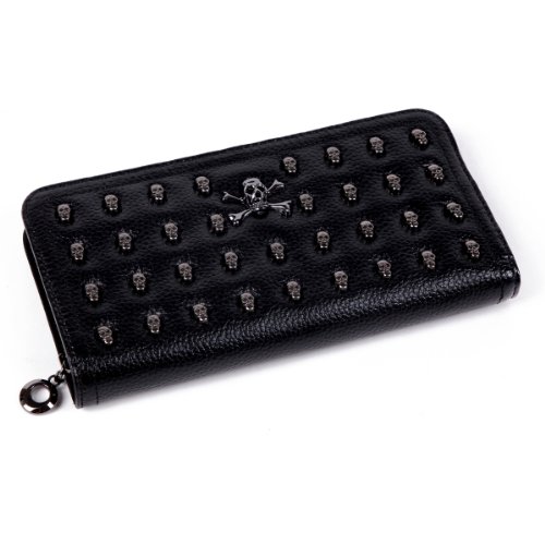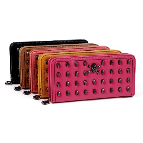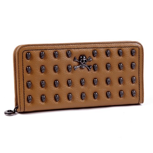 Damara Elegant Leather Large Womens Skull Zip Wallet,Yellow