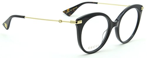 Product Description Rounded cat eye shape, characterized by acetate front combined with metal thin temples. Small GG interlocking soldered on temples, to re-call the vintage feeling and hot print bee on the end tip to add a trendy twist to the product. Sophisticated color palette, enriched by pearled colors on the front. Distinctive tones recalling the colors of the iconic Gucci Web. 0