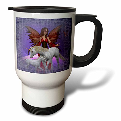 3dRose tm_167104_1 Unicorn and Pretty Masked Fairy in Purple Gradient Colors Stainless Steel Travel Mug, 14-Ounce