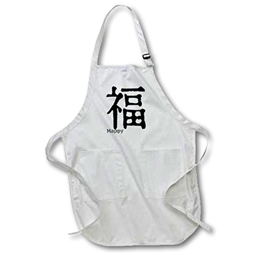 3dRose LLC Chinese Symbol Happy Black Full Length Apron with Pocket, 22 by 30-Inch