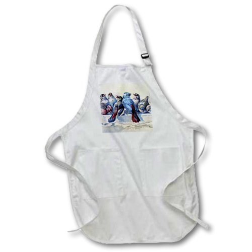 3dRose apr_41673_1 Colorful Bluebirds with Red Tails-Full Length Apron with Pockets, 22 by 30-Inch, White