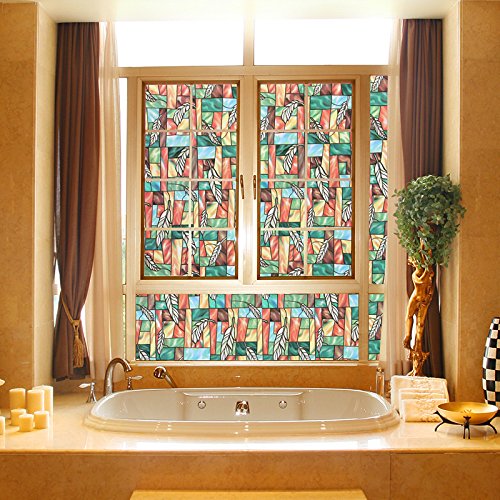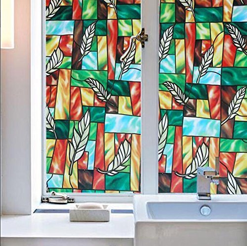 Weikai Window Films, Non-adhesive Static Cling Window Shades Privacy Stained Glass Panels Window Film Panel Window Treatments for Home, 17.7 Inches By 78.7 Inches