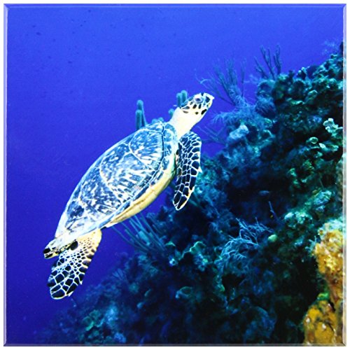 3dRose ct_74847_2 Cayman Islands, Hawksbill Sea Turtle and Coral Reef -Ca42 Pso0091-Paul Souders-Ceramic Tile, 6-Inch