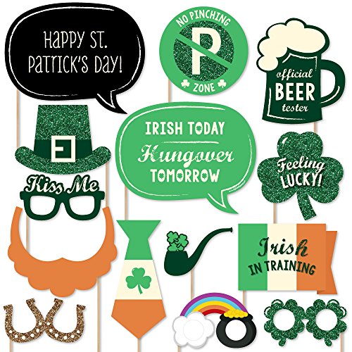 HIGH-QUALITY PARTY SUPPLIES: St. Patrick's Day photo booth props are professionally printed on thick cardstock paper. They will arrive cut out and ready to assemble with the included wooden dowel sticks and adhesives. St. Patrick's Day photo booth props use a No-Mess Glitter Print: Our photo booth props are designed with a printed image of glitter, eliminating glitter flake while maximizing bling effect!