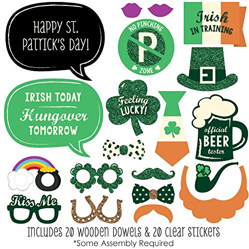 20-Piece Irish Photo Booth Props Kit INCLUDES 20 St. Patrick's Day photo booth props, 20 wooden dowel sticks and adhesives for assembly. EASY ASSEMBLY: Simply attach the printed DIY photo booth props to the wooden dowels with included adhesive and reinforcing stickers.