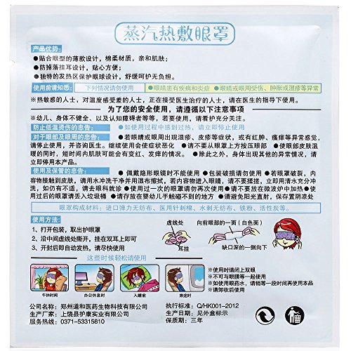 What is steam eye mask? Simply,steam eye mask is an eye mask thatcan activate blood circulation around the eyes and relieveeye strain and fatigue. The effect of Steam Eye Mask: AuthenticEssence Oil Steam Eye Mask Soothing the Nerves and Aiding Sleep Dilute the Dark Circles Relieves Eye Strain and Fatigue Rose Essence Oil Eye Mask Flavorof rose steam comforts your eyes. Top Five Functions: 1.Dilute the Dark Circles:Dilute the dark circles for long use. 2.Relieves Eye Strain and Fatigue;Hot compress to relieves eye strain and fatigue. 3.Moist Eyes:Eye mask releases steam to make your eyes moisturizing. 4.Soothing the Nerves and Aiding Sleep:Soft, warm material aids sleeping. 5.Clean cosmetic residual:Warm steam accelerates the flushing out of toxin. Precautions: 1. Pls. do not use when eyes have the disease, inflammation, or scratches, swelling around the eyes, eczema and other abnormal circumstances. 2. Because of individual differences in skin sensitivity, if the temperature is too high or you feel uncomfortable, stop using it immediately. 3. It will produce hot steam in the process, so there may cause the makeup to disappear. 4. If you have used the eye drops, please wait a moment before using this product. 5. Each piece can only be used once, do not reuse. 0