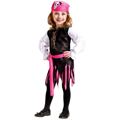 -. Brand : Fun World -. Color : Pink, White, Black -. Department : girls -. Feature : What's Included: Top with Sash Skirt Bandana Toddler Size -. Label : Fun World -. Manufacturer : Fun World -. PackageQuantity : 1 -. ProductGroup : Apparel -. ProductTypeName : BABY_COSTUME -. Publisher : Fun World -. Studio : Fun World -. Title : Caribbean Pirate Girl Toddler Costume