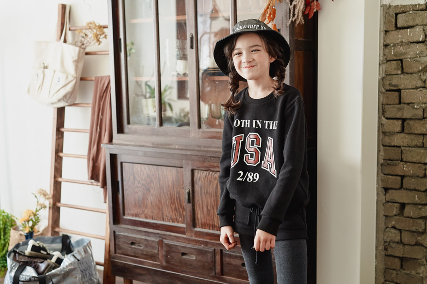 9, 11, 13, 15, 17호로 준비되어 있으며 하단에 측정된 사이즈 표를 참고해 주세요. 이 제품은 표준 사이즈로 디자인 된 제품입니다. 피팅한 여아 모델은140cm에 31kg으로 다소 마른 체격이며, 딱맞게 블랙 11호를 착용하였습니다. 깔끔한 핏으로 잘 맞네요 ;) * 상의 앞판 나염의 경우 벗겨진 나염처리가 아닌 빈티지디자인임을 구매 전 확인해 주세요 ;) * * 하의의 밑단에 봉제선이 아닌 컷팅 처리된 디자인임을 구매 전 확인해 주세요 ;) *