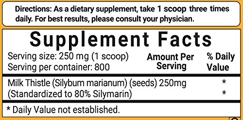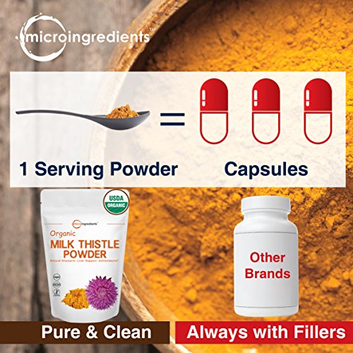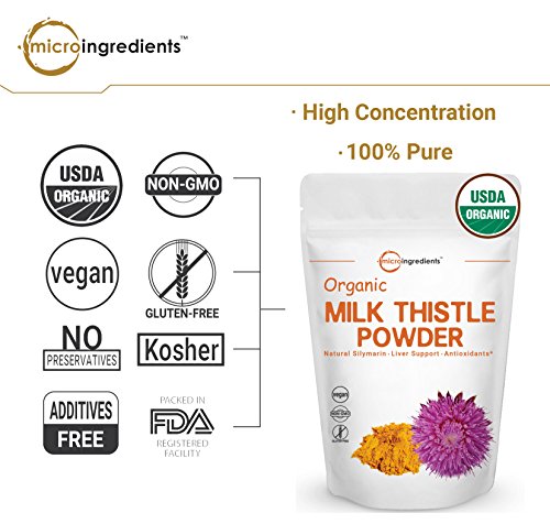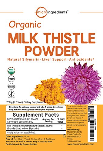 -. Feature : USDA Organic Milk Thistle Powder. Non-GMO and Vegan Friendly. / Powerfully Helps rebuild liver cells while drawing out toxins from the body and promotes healthier skin. Powerful anti-inflammatory helps lower high cholesterol levels by cleaning the blood and preventing oxidation stress damage within the arteries. / No additives, No preservatives, No artificial sweeteners, No Fillers, No GMOs, No Soy and Gluten Free. / Scoop included to get the perfect measurement every time. Take it daily with or between meals by adding it to a shake or smoothie, and see what the most nutrient-dense super food on the planet is all about. / Powder lover? Take it naturally in powder for higher concentration, quicker absorption, easier on the stomach, and more ways to have fun!