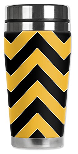 Mugzie 808-MAX "Pittsburgh Football Colors Chevron" Stainless Steel Travel Mug with Insulated Wetsuit Cover, 20 oz, Black