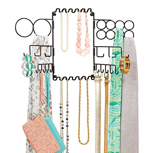 - Organizes necklaces, bracelets, clutch purses, belts, earrings, rings, sunglasses, and more