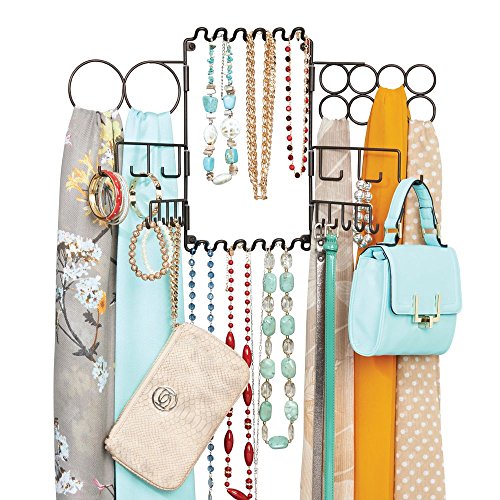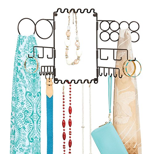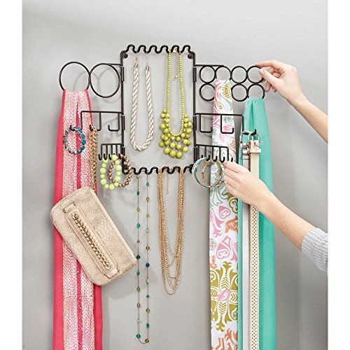 InterDesign Classico Hanging Fashion Jewelry and Accessories Organizer for Rings, Earrings, Bracelets, Necklaces, Scarves, Belts - Wall Mount, Bronze