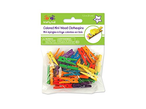 Krafty Kids CW603 40 Piece 1.19" Mini Clothespins Colored Craftwood