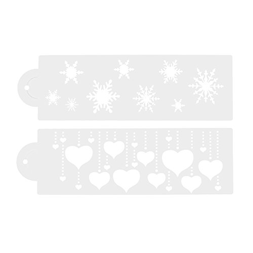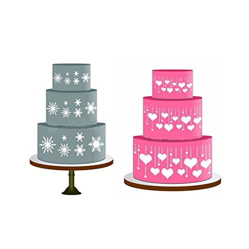 COSMOS 2 Pcs Different Pattern Cake Side Stencils , 4inch Width ( Heart Pattern and Snowflake )