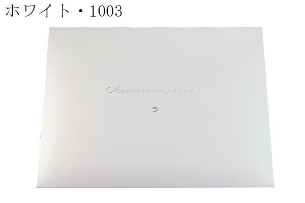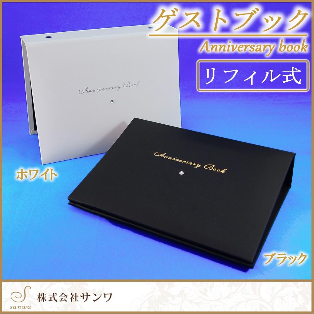 | ゲストカードを事前に記入し披露宴に持参いただくスタイルのゲストブックです。箔押しされた華やかなレザー風カバーにスワロフスキークリスタルがアクセントとして取り付けられています。お色はブラックとホワイトの2色をご用意しています。 |