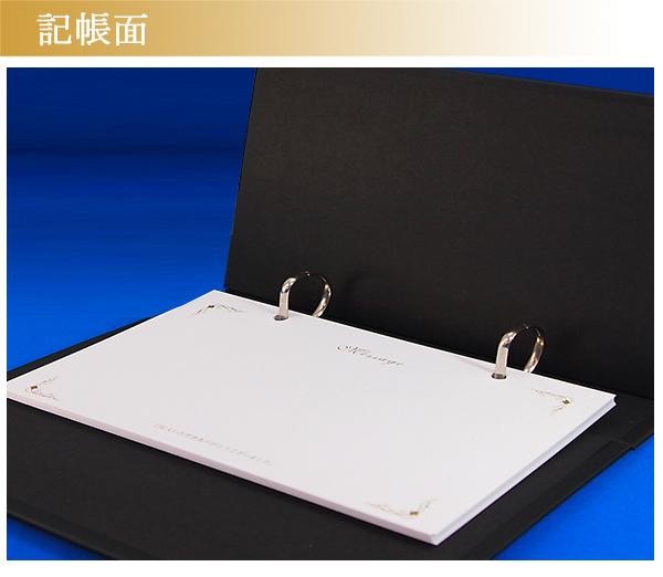 ゲストカードを事前に記入し披露宴に持参いただくスタイルのゲストブックです。箔押しされた華やかなレザー風カバーにスワロフスキークリスタルがアクセントとして取り付けられています。お色はブラックとホワイトの2色をご用意しています。 |