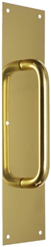 Rockwood 107 X 70C.3 Brass Pull Plate, 16" Height x 4" Width x 0.050" Thick, 8" Center-to-Center Handle Length, 3/4" Pull Diameter, Polished Clear Coated Finish