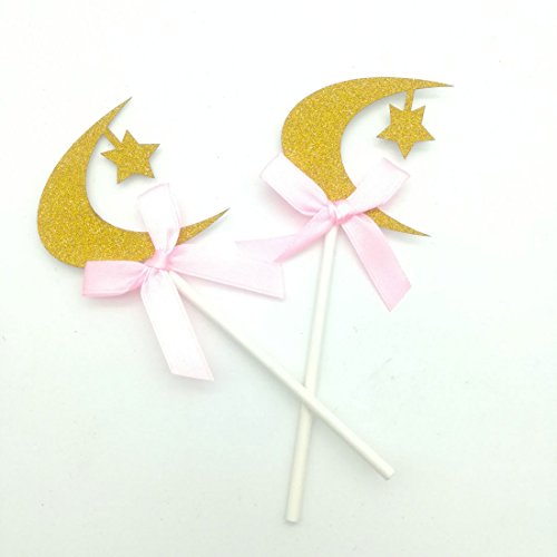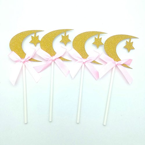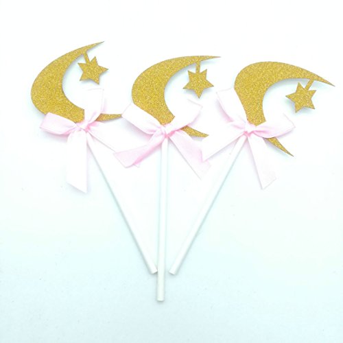 Paity 10pcs gold Moon and Star Cupcake Toppers happy birthday Cupcake Toppers | Glitter Cupcake Toppers | Baby Shower Cupcake Toppers Baby Girl, Baby Boy