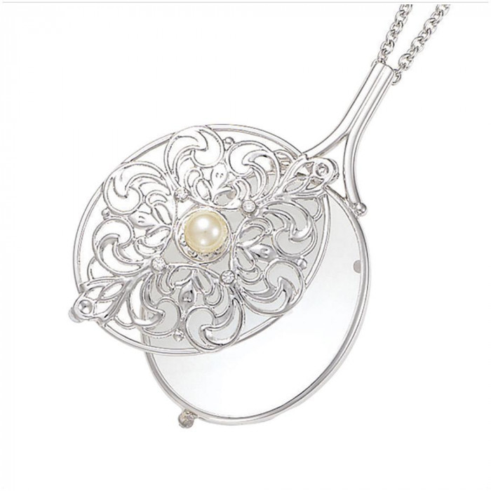 おしゃれなモチーフの可愛いルーペです。 製造国:日本 素材・材質:枠:真鍮、貝パール(イミテーションパール)、スワロフスキー(PP11)チェーン:真鍮レンズ:ガラス 商品サイズ:レンズサイズ:横30×縦37mm、ネックチェーン長さ:60cm+アジャスター10cm 重量:約22.0g 仕様:倍率:10D・3.5倍 付属品:ケース、別珍ポーチ、説明書 ※サプライヤー直送品 ご注文後3~4営業日後の出荷となります【商品名】EW-3 ブレストルーペ スライド式 07198