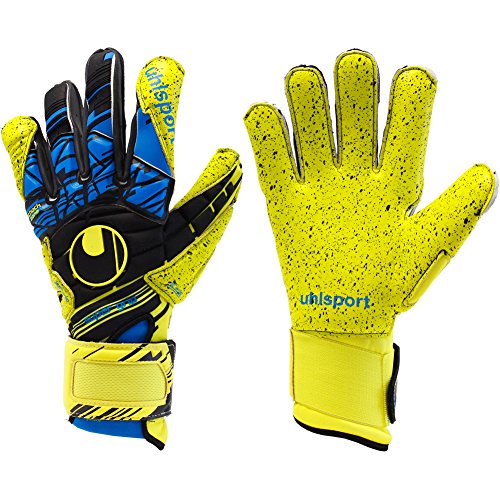 Studio : Uhlsport Publisher : Uhlsport Binding : Misc. Product Description PALM: - innovative uhlsport SUPERGRIP foam with integrated high grip elements BACKHAND: - materialmix of silicon and high frequency latex pieces on the upperhand and the fingers - 3D-embossed latex SCHOCKZONE with a high rebound zone inside CUT: - innovative cut with smallfinger forefinger and thumb wrap - Latex gussets with needle punches - wrap at the edge of the hand GLOVE BODY: - neoprene glove body - asymmetric very flexible neoprene bandage with a lycra insert FASTENING: - semi-elastic full latex strap with namefield - easy entry system DESIGN: - new and unique design 0