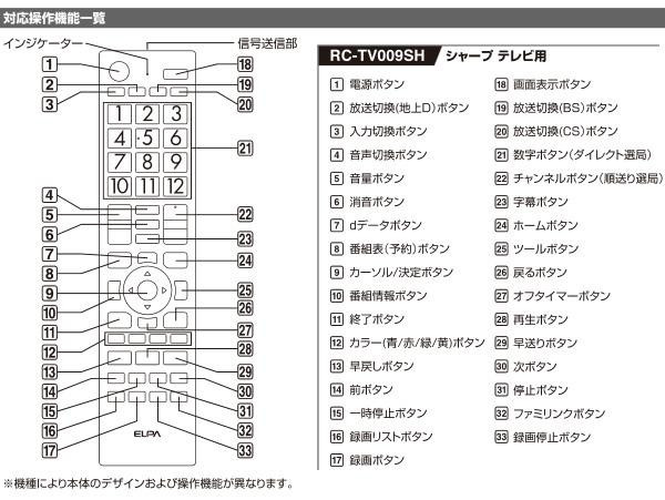 | リモコンの増設、取り替えに便利なテレビリモコン。 |