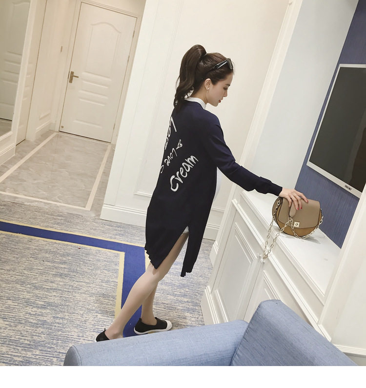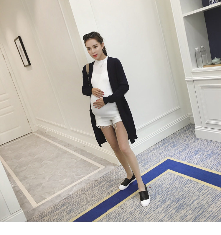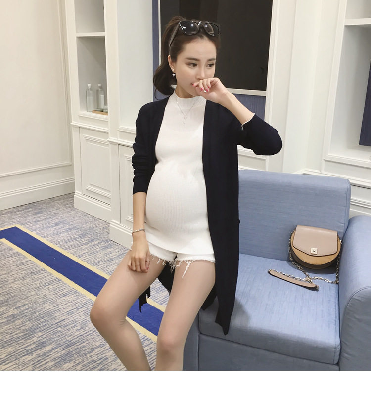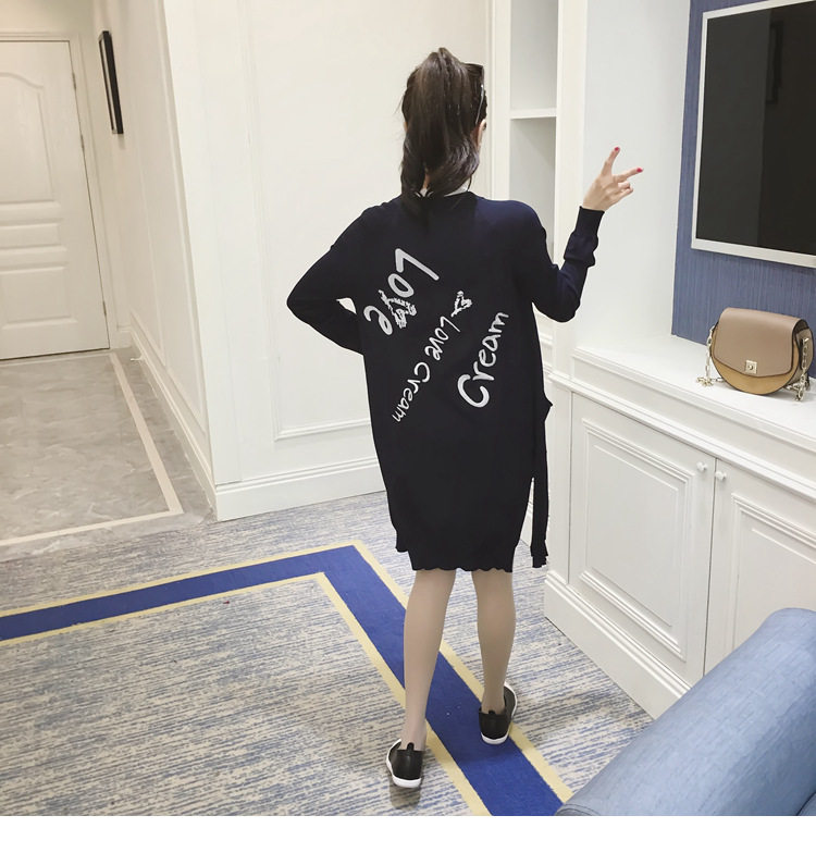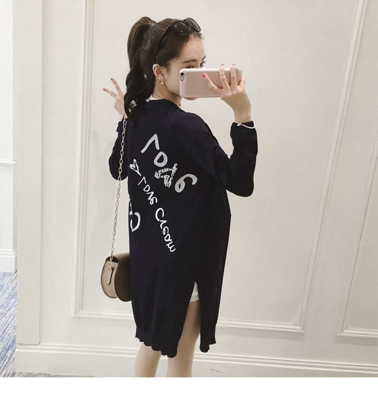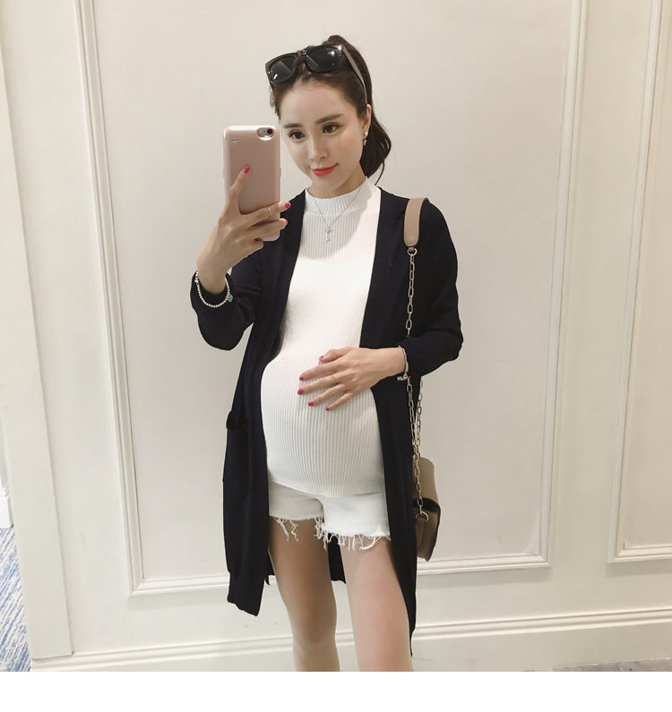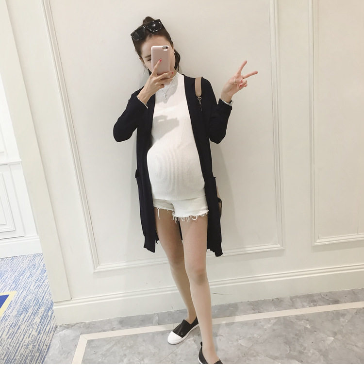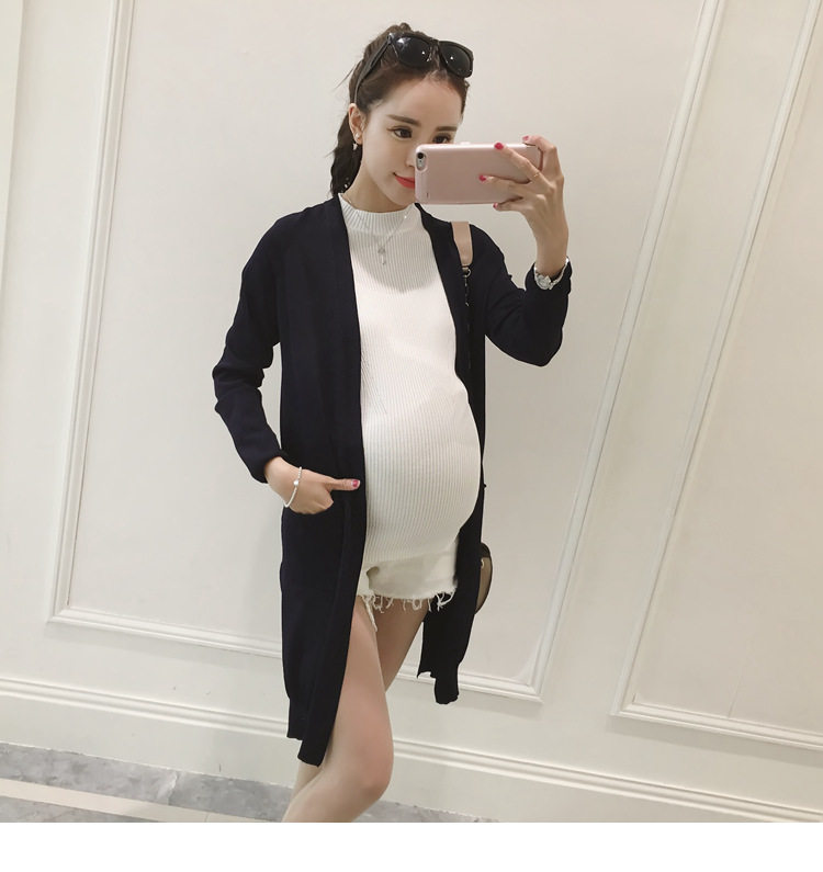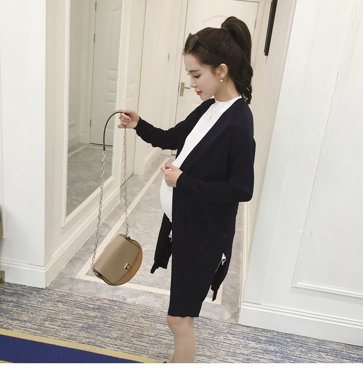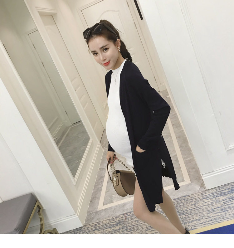 孕妇装春装上衣外套新款长袖冰丝针织衫中长款孕妇针织开衫