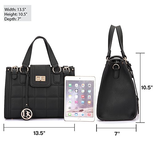 DIMENSIONS: 13.5"W x 10.5"H x 7"D / Handle Drop Length: 6" / Shoulder Strap Length: End to End 48". Fashionable, practical and multi-function design . This cute purse can fit tablet, small notebook textbooks , also it is a elegant and classy shoulder bag, women fashion handbag.