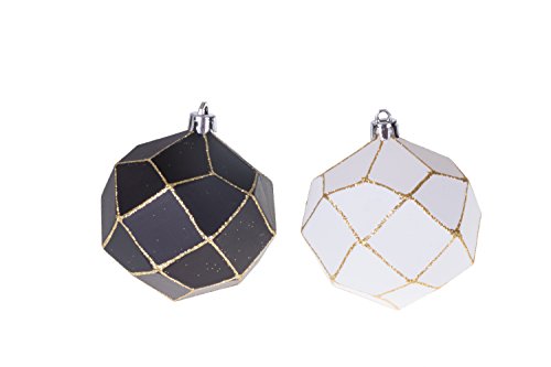 HANGING STRINGS INCLUDED: Each of these ornaments comes with a hanging string so you can start decorating right out the box. This set features ornaments with a black and white color and a matte texture in the shape of a flat sided geometric circle. Each ornament measures approx 75mm