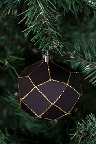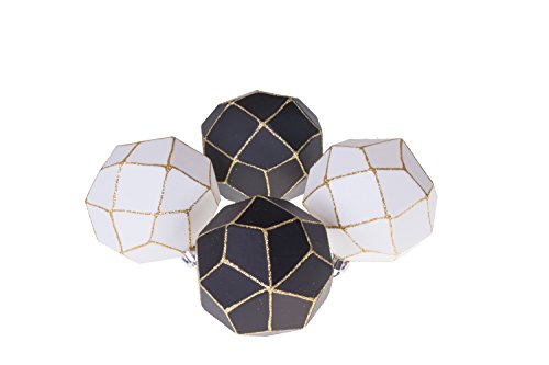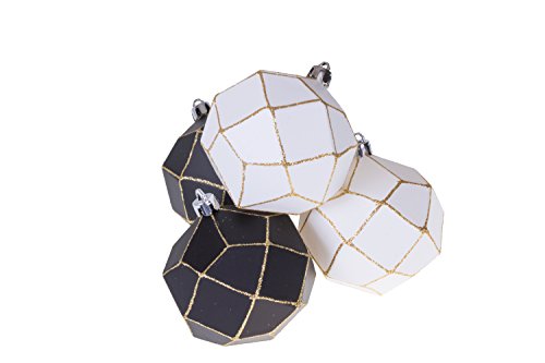 Christmas Ornament Ball Set by Clever Creations | Black and White with Gold Glitter | 4 Pack | Festive Holiday Décor | Geometric Sphere| Classic Design | Shatter Resistant | Hangers Included | 75mm