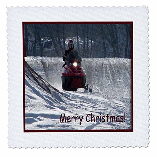 3dRose qs_26991_3 Snowmobile Rider Merry Christmas-Quilt Square, 8 by 8-Inch