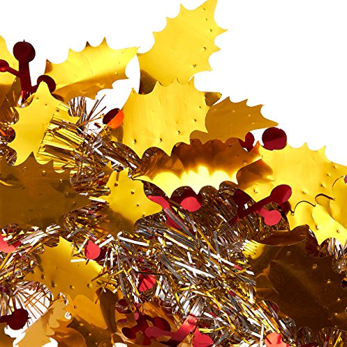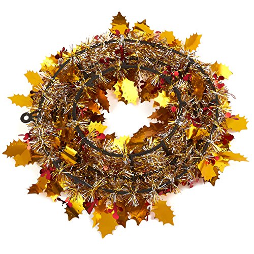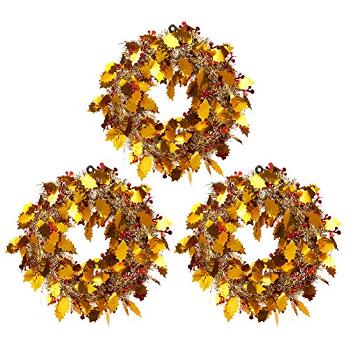 SET INCLUDES: 3 glittering tinsel wreaths with golden leaves, mounted on plastic frames. Hang them on your door to give a warm welcome to guests and friends during the cold time of the year!