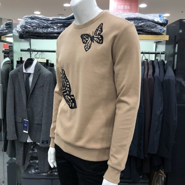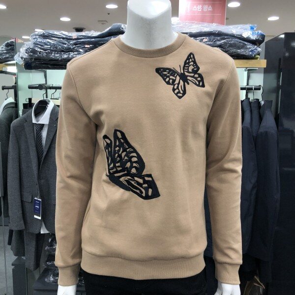 보온성과 소프트한 터치감이 좋은 양면소재의 나비모양을 자수로 표현한 맨투맨입니다 피부에 닿는 느낌이 부드러워 착장감이 좋습니다