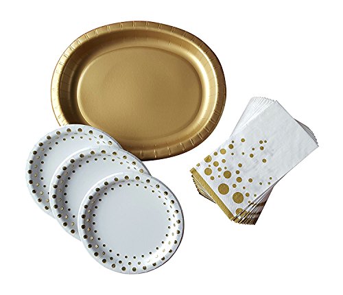 Gold Sparkle Party Supply Pack: Including Heavywieght Platters, Appetizer/Dessert Plates, and Guest Towels