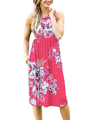 Dokotoo Womens Summer Casual Floral Print Midi Dresses (S-XL)