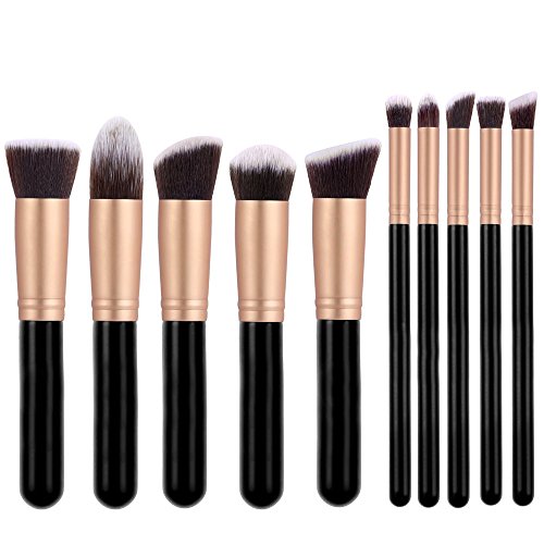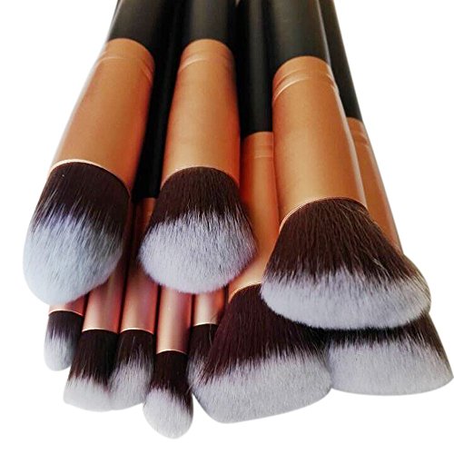 Xuheng 10pcs Powder Makeup Brush Set Foundation Brush Makeup Tool Kit Eyebrow Lip Lighter Blending Cosmetic Brush Pink Gold