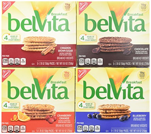 BelVita Breakfast Biscuits Variety Pack - Blueberry, Chocolate, Cinnamon Brown Sugar & Cranberry Orange (1) 8.8 oz. Box of Each Flavor (Bundle of 4)