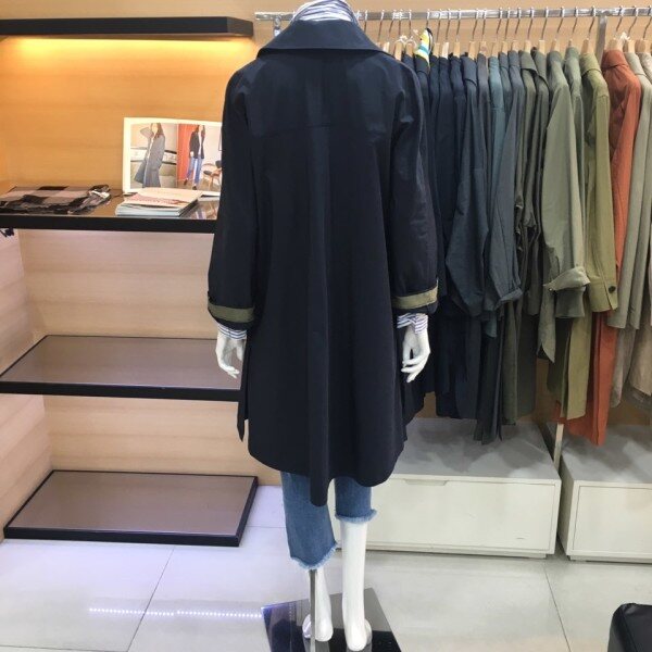 쉬즈미스 군더기없이 심플한 디자인으로 차분하여 포멀한 분위기를 연출하는 트렌치코트예요 벨트로 허리라인을 잡아주는 세련스러운 디자인이예요