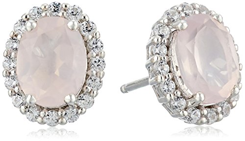-. Title : Sterling Silver Oval Rose Quartz with Created White Sapphire Halo Stud Earrings