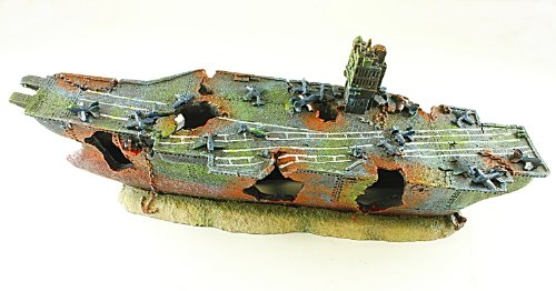 -. Binding : Misc. -. Brand : Aquarium H2o -. Color : Assorted -. EAN : 5060300642060 -. Feature : Realistic Aircraft Carrier Ornament / Great Detail in Design / Size is 27 inch long x 7 inch wide x 9 inch high / Different design shows jets on flightdeck / Fishtank friendly -. Label : United Aquatics LLC -. Manufacturer : United Aquatics LLC -. PackageQuantity : 1 -. ProductGroup : Pet Products -. ProductTypeName : PET_SUPPLIES -. Publisher : United Aquatics LLC -. Size : 27 Inches long x 7 Inches wide x 9 Inches Tall -. Studio : United Aquatics LLC -. Title : XL Aircraft Carrier Aquarium Ornament 27 Inches Long!