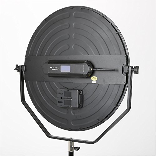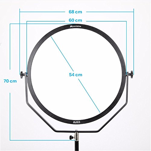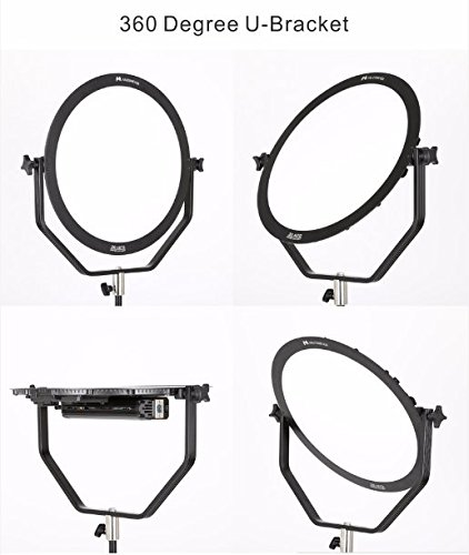 LED light is designed in mirror style providing extremely soft lighting for all applications Color temperature adjustable from 3000-5600K,with TLCI of 95.5 A delicate control box is attached at the back of the light with LCD touch screen control With U Bracket,you can adjust your shooting angle in 360 degree according to your shooting needs With V mount Socket to NP Battery Convertor,allow you to use two NP-F series battery