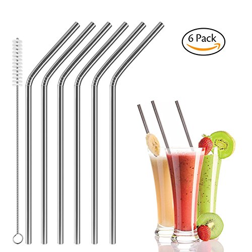 Yohome Stainless Steel Drinking Straws, Set of 6 with Cleaning Brush.