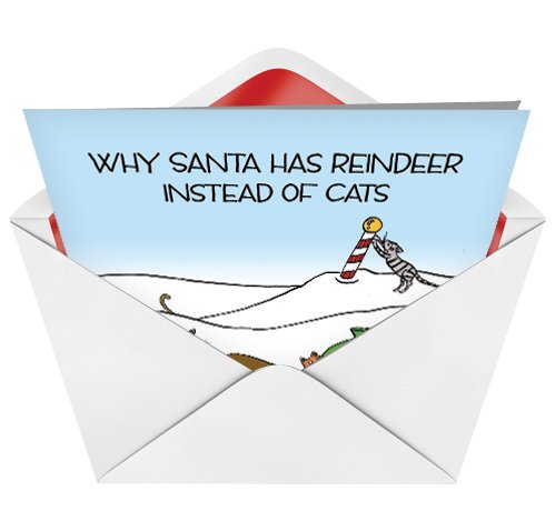 B1884 Box Set of 12 Reindeer Cats Unique Hilarious Christmas Cards with Envelopes
