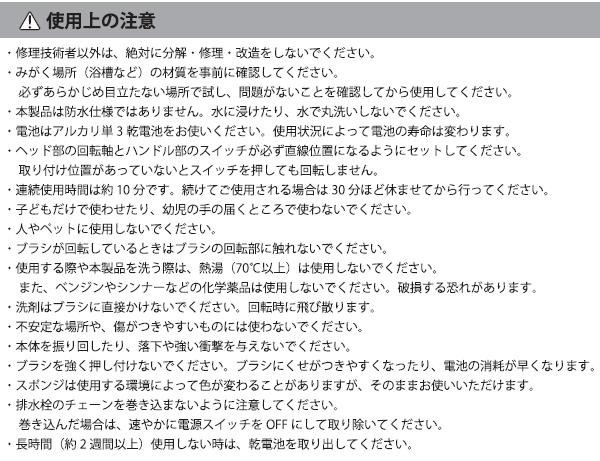 | 素材・材質 | 本体・ホルダー:ABS樹脂 ブラシ:ナイロン スポンジ:ポリウレタン もこもこカバー:ポリエステル |