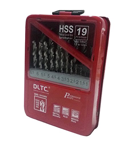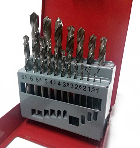 Agile-Shop 19pcs HSS Titanium Coated Twist Drill Bits Tool Set Metric System 1 mm - 10 mm for Joiners Builders Electricians (Silver)