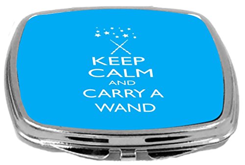 Rikki Knight Compact Mirror, Keep Calm and Carry a Wand, Sky Blue