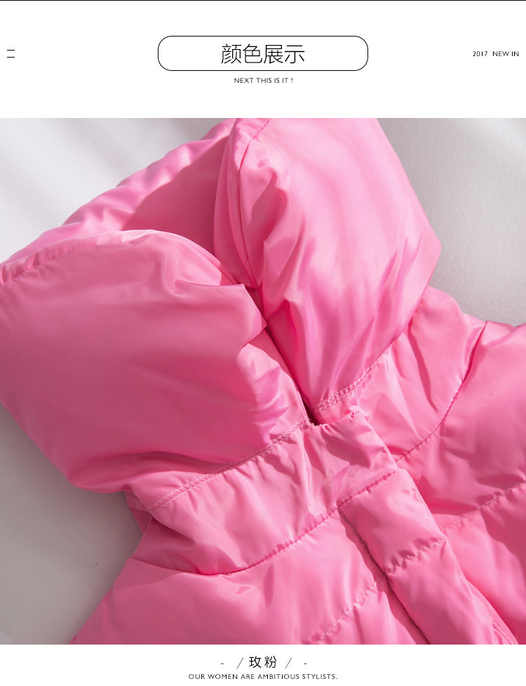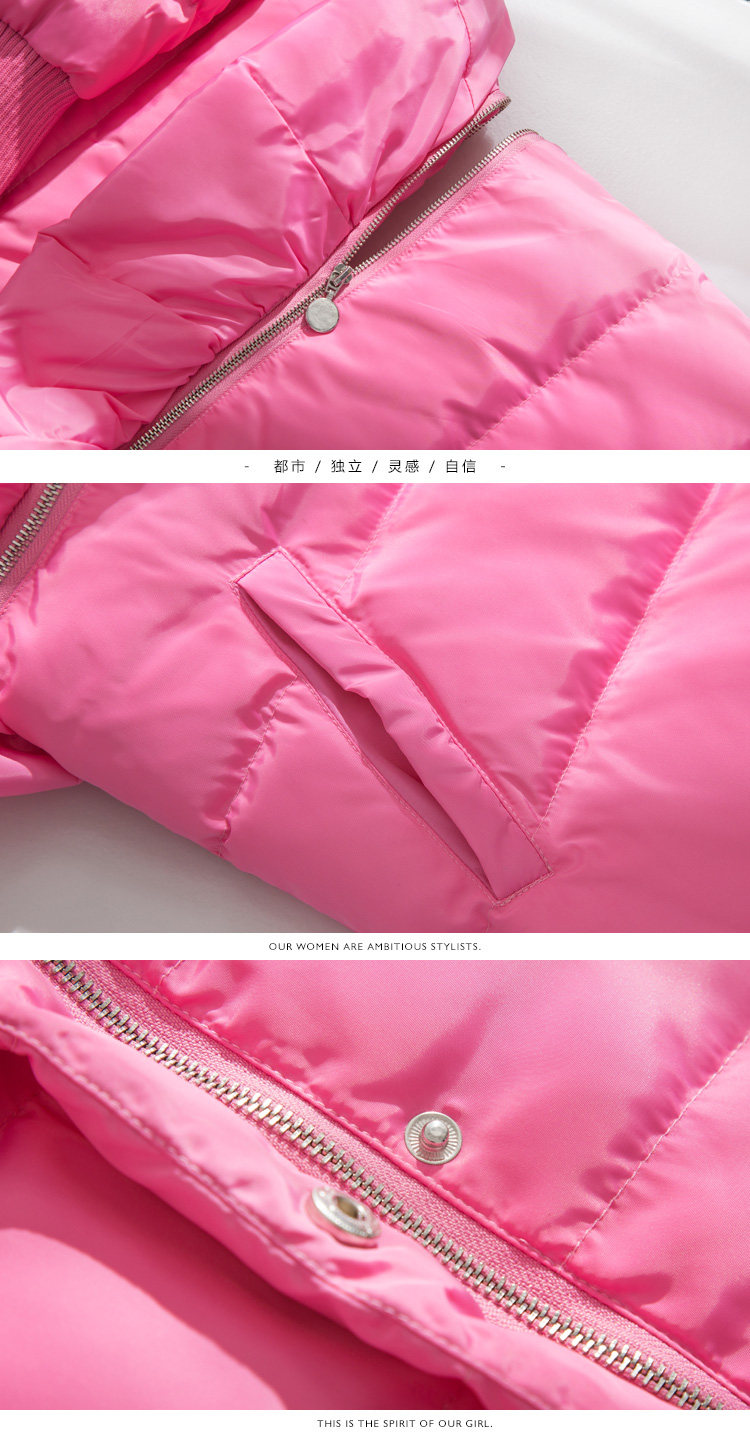 | 主 料:聚酯纤维(涂层除外)里 料:聚酯纤维胆 布:聚酯纤维填 充:白鸭绒(含绒量90%)鸭绒克重:S :163 g M :173g L :182g XL:192g颜 色:玫粉 |