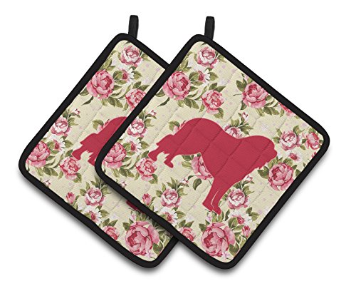 Caroline's Treasures Tibetial Mastiff Shabby Chic Yellow Roses Pair of Pot Holders BB1077-RS-YW-PTHD, 7.5HX7.5W, Multicolor