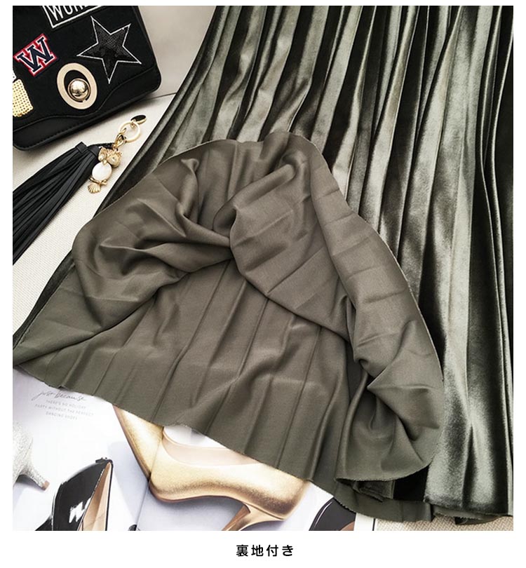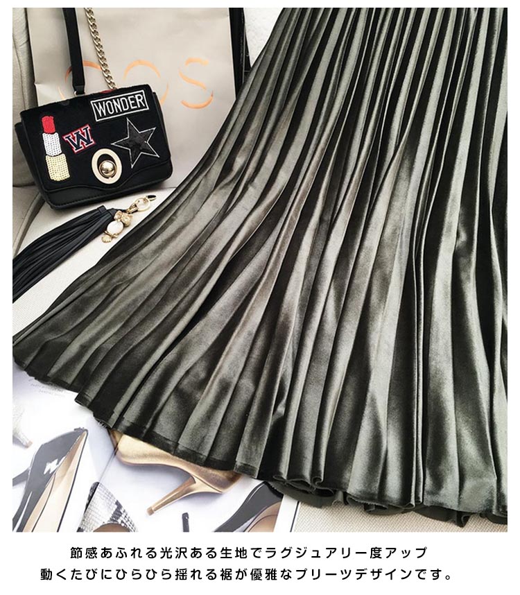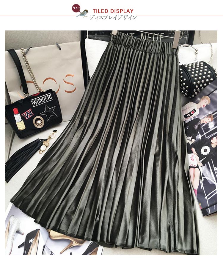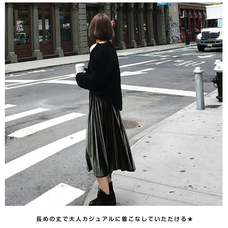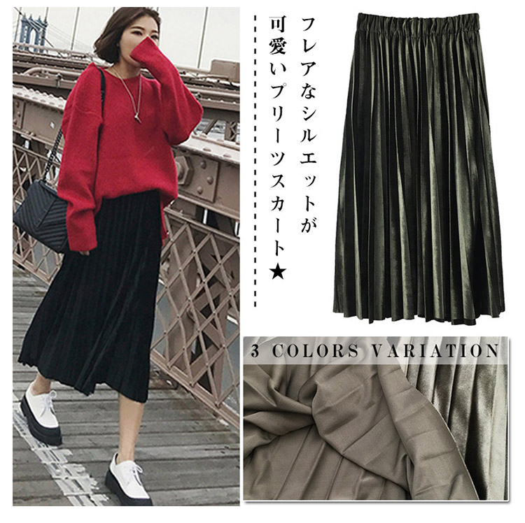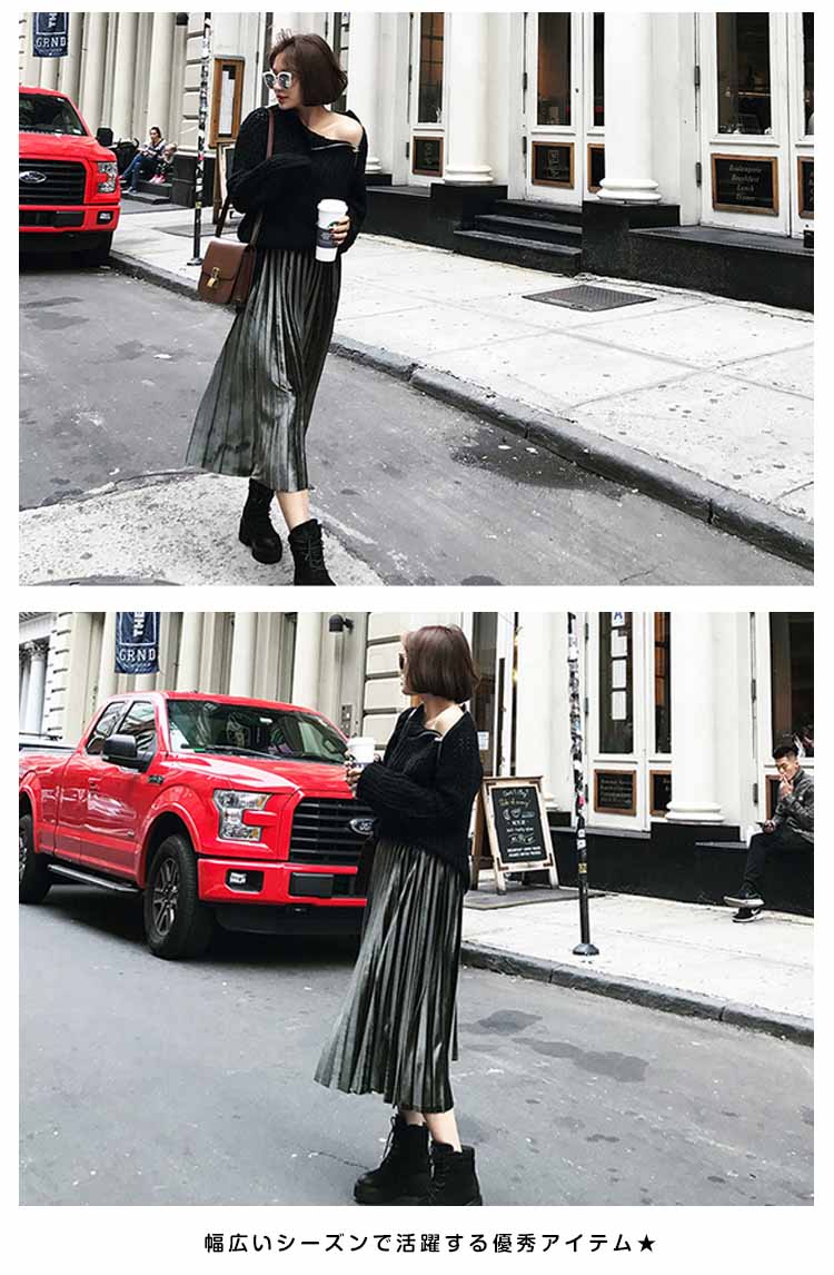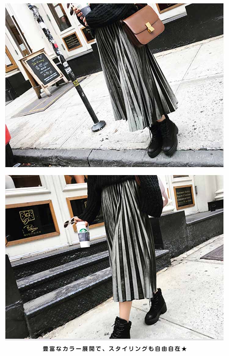 | フレアなシルエットが可愛いプリーツスカート★豊富なカラー展開で、スタイリングも自由自在★幅広いシーズンで活躍する優秀アイテム★長めの丈で大人カジュアルに着こなしていただける★ | |