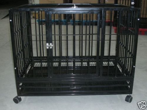 -. Title : 42" Heavy Duty Pet Crate With Wheels *Black*
